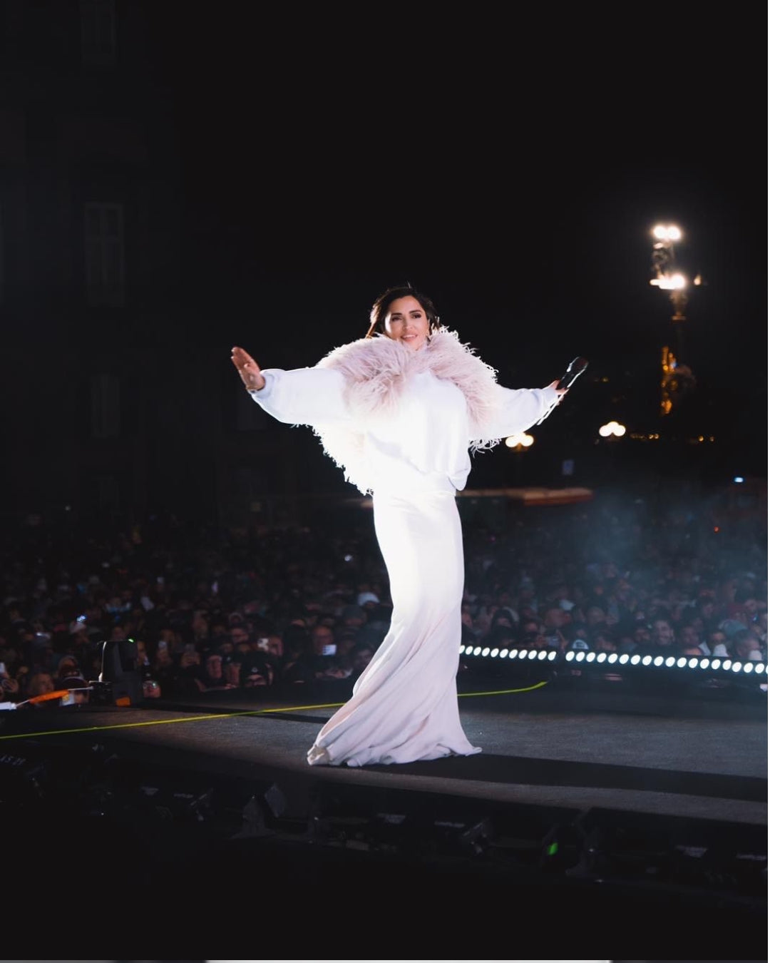 On the stage of Rome’s Palazzo dello Sport, for the grand finale of the “Nostalgia Indoor Tour 2025”, Noemi chooses Collini Milano 1937 for a luminous, statement look blending strength, femininity and stage presence.